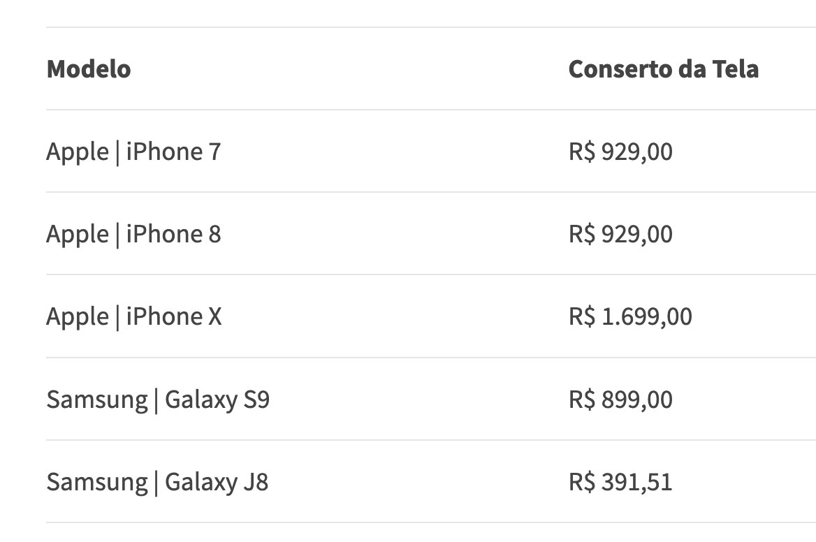 Cai pra trás com o preço do conserto de algum dos celulares mais vendidos do país da época:
